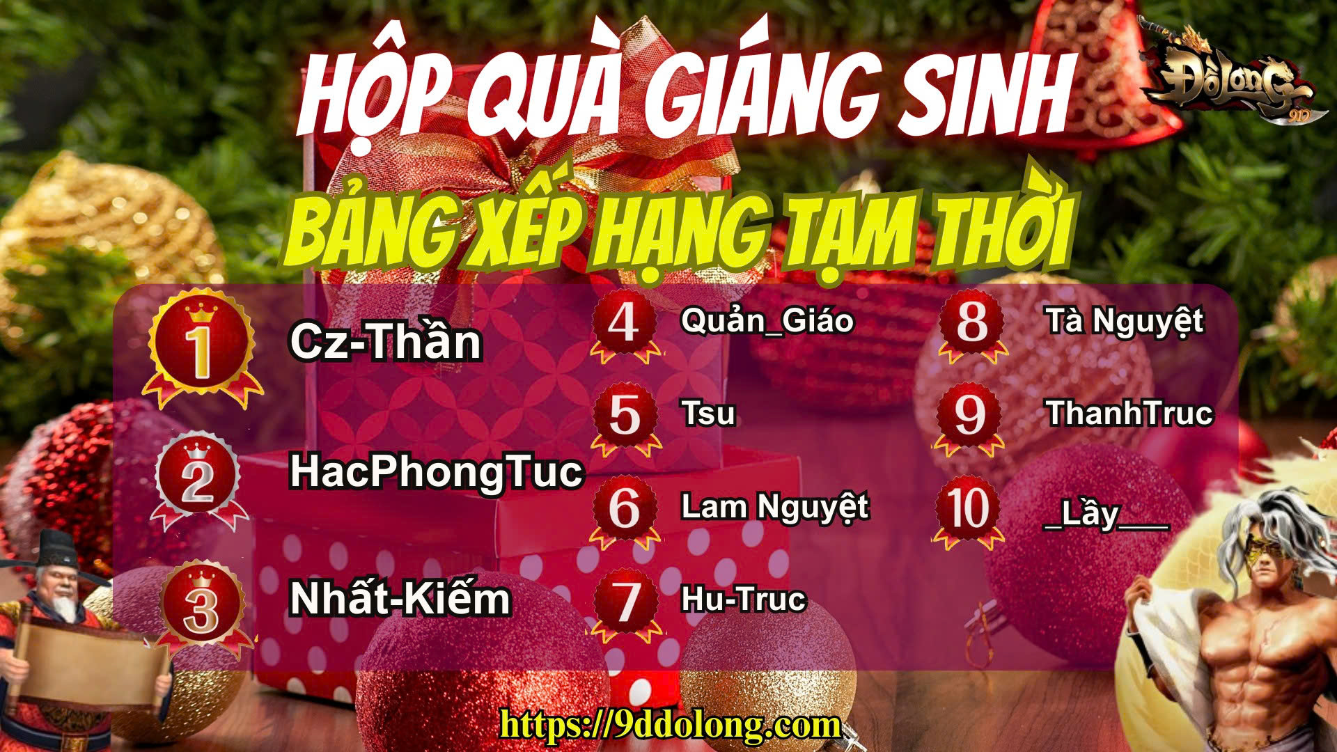 Chư vị đại hiệp, cuộc đua mở Hộp Quà Giáng Sinh đang nóng hơn bao giờ hết. Dưới đây là Bảng Xếp Hạng tạm thời (được cập nhật theo kỳ):